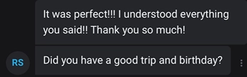 Me canso a hacer una videollamada de pegging de 10 minutos sin mis anotaciones a mano por que no las encontré, cuando termine le pregunte si le gusto y que si me entendio, su respuesta.